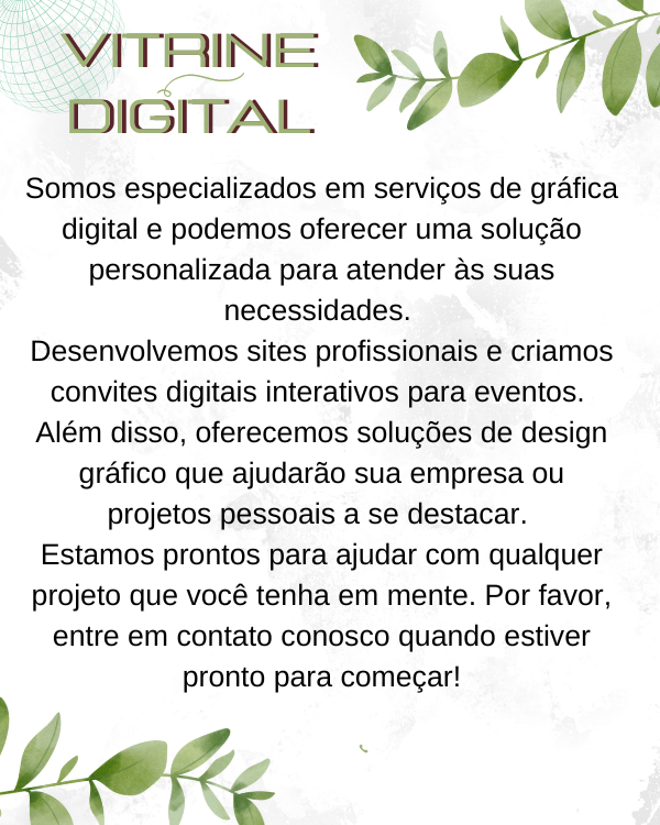 O Site Vitrine Digital Service não analisou todos os sites vinculados ao seu site e não é responsável pelo conteúdo de nenhum site vinculado. A inclusão de qualquer link não implica endosso por Site Vitrine Digital Service do site. O uso de qualquer site vinculado é por conta e risco do usuário.